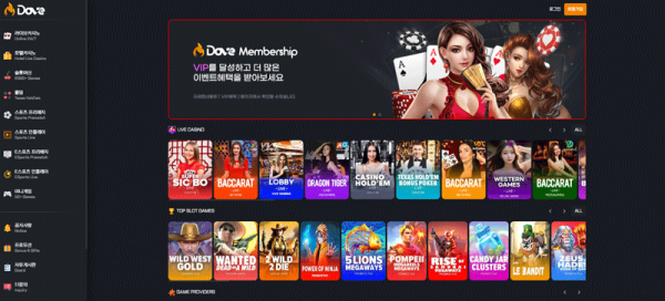 도브카지노의 게임 라인업은 폭넓고 깊이 있습니다. 라이브 카지노에서는 바카라, 드래곤 타이거, 텍사스 홀덤, 블랙잭 등 주요 테이블 게임이 준비되어 있으며, 각 게임은 전문 딜러와 실시간 스트리밍으로 진행됩니다. 슬롯머신 카테고리는 2000개 이상의 타이틀을 보유하고 있으며, 와일드웨스트골드, 원티드, 파워오브닌자 등 인기 시리즈부터 최신 릴리즈까지 다양하게 즐길 수 있습니다.