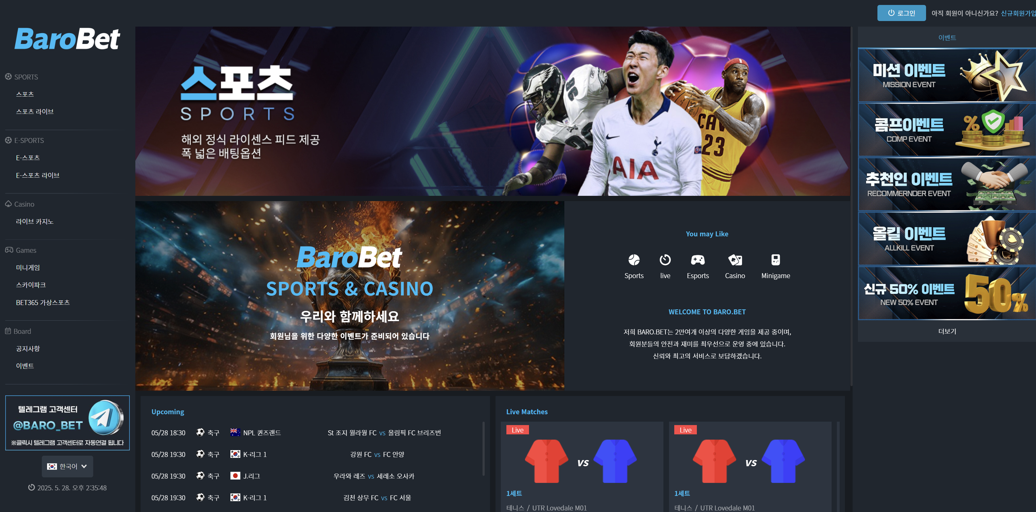 • 다양한 게임 카테고리: 슬롯, 라이브 카지노, 스포츠 베팅 등